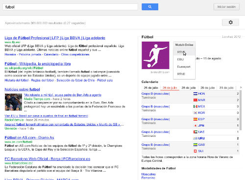 Si es cerca un esport olímpic a google veureu que als resultats , a la dreta, hi apareix el calendari i enllaços per veure el partit online.